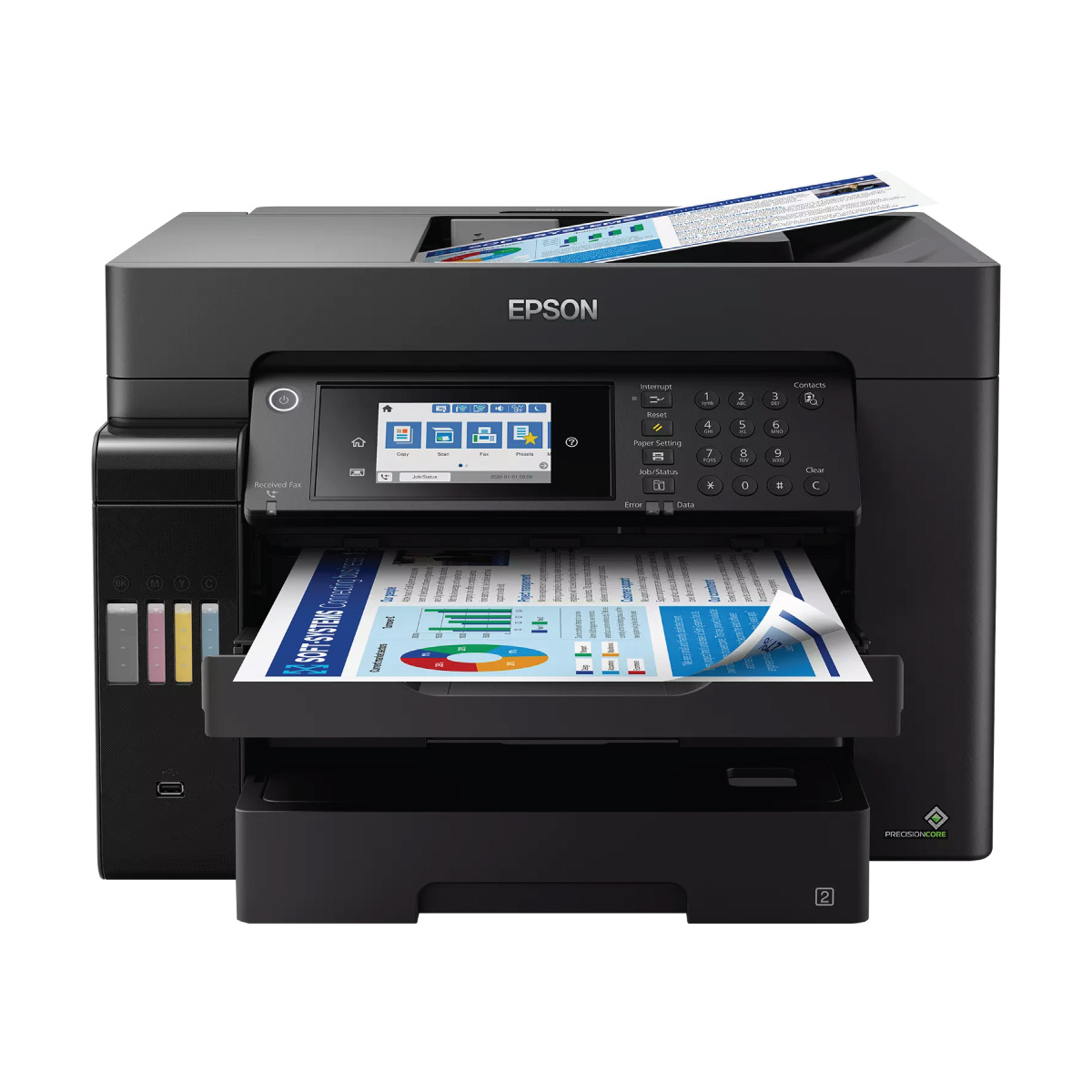 Epson L15160, PrecisionCore™ Baskı Kafası ile 800 Ağızlık Yapısına sahiptir, 4.800 x 1.200 İnç başına nokta baskı çözünürlüğü sunar. Dakikada 25 sayfa tek renkli ve renkli baskı yapabilir. Ürün, 1 mürekkep seti ile birlikte gelir.