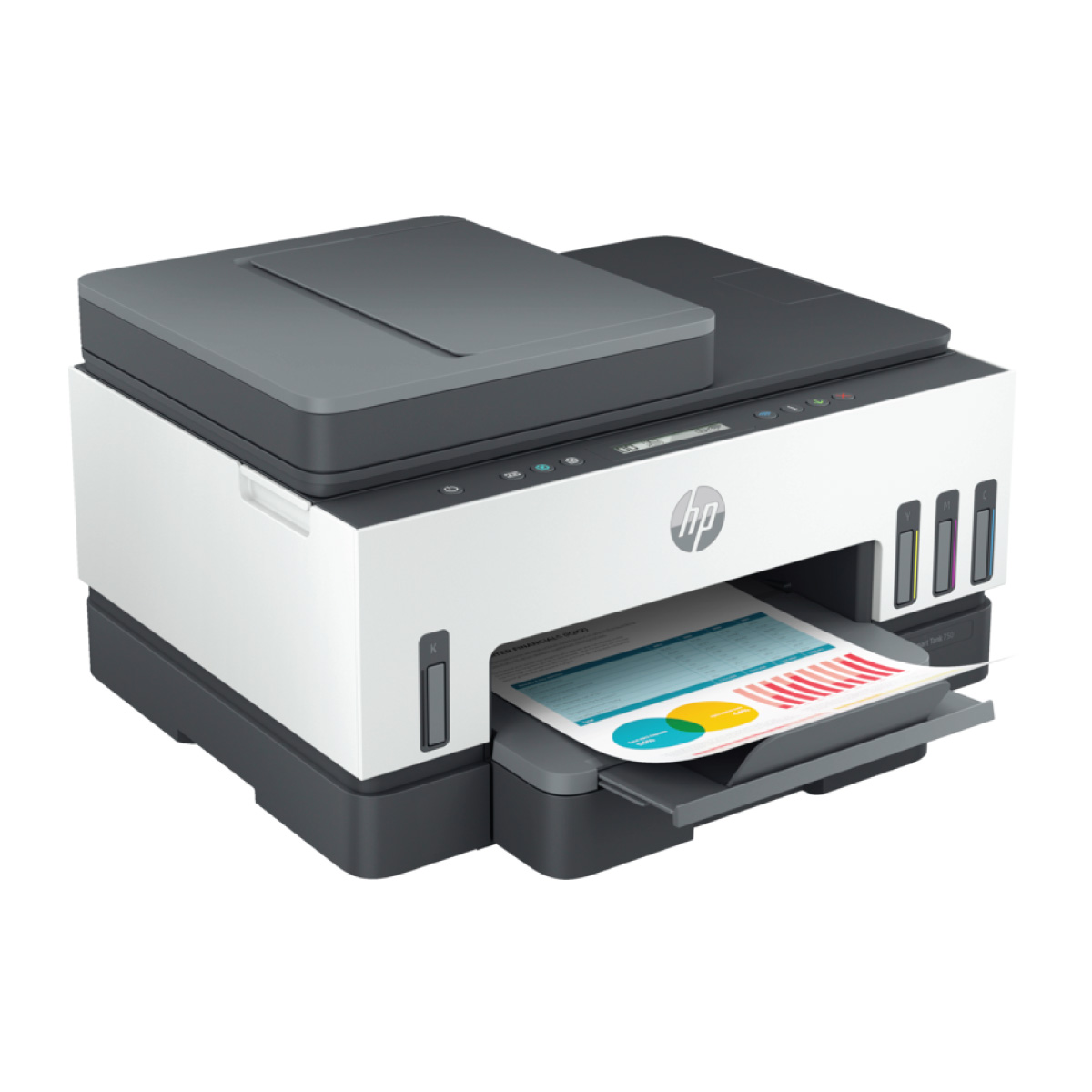 HP Smart Tank 750, yüksek hacimli baskılar için tasarlanmıştır. Otomatik çift taraflı baskı özelliği ile işleri hızla tamamlayın. Güvenilir çift bantlı Wi-Fi bağlantısı sayesinde daha hızlı ve daha güvenilir bağlantılar elde edin. HP Smart uygulamasıyla telefonunuzdan baskı alın, tarayın ve kopyalayın.