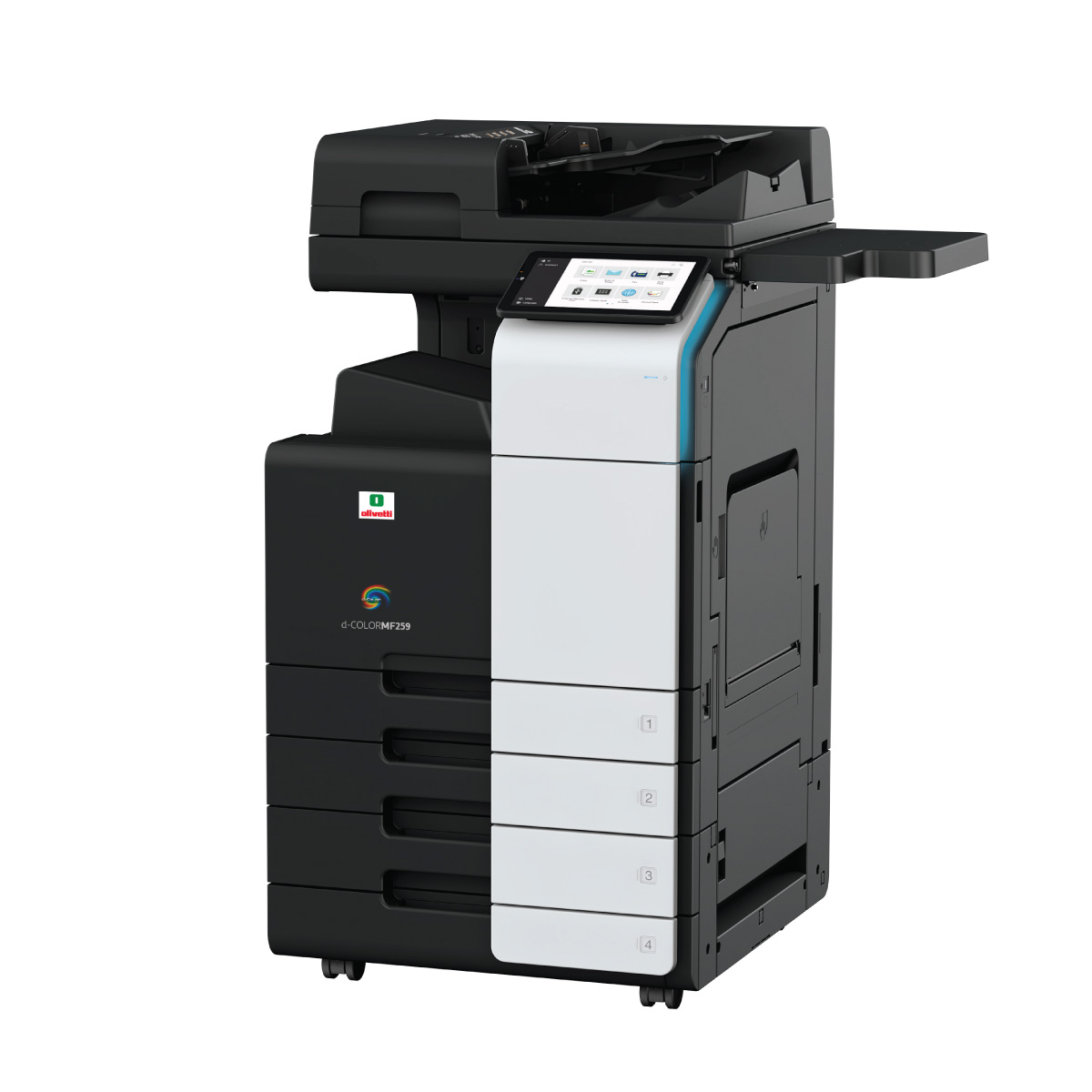Olivetti d-Color MF259, kullanım kolaylığı ve yüksek performansı bir araya getirerek ofislerdeki iş akışını önemli ölçüde iyileştirir. 10.1 inçlik geniş dokunmatik ekranı, tüm fonksiyonlara hızlı ve kolay bir şekilde erişim sağlar. Standart olarak sunulan 8 GB RAM ve 256 GB SSD bellek ile yüksek hızda işlem yapma kapasitesine sahiptir. Güvenlik açısından, cihaz ISO/IEC 15408 standardına uygun veri şifreleme ve üzerine yazma özellikleri ile donatılmıştır, ayrıca opsiyonel Bitdefender® Antivirus ile veri koruması sağlar.